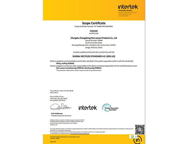 常熟市常盛無(wú)紡制品有限公司座落在中國(guó)無(wú)紡名鎮(zhèn)——任陽(yáng)鎮(zhèn),擁有生產(chǎn)、倉(cāng)儲(chǔ)車(chē)間11200平方米,通過(guò)ISO9001、ISO45001、ISO14001體系認(rèn)證。公司具有15年的無(wú)紡產(chǎn)品生產(chǎn)經(jīng)驗(yàn),專注于紡絲棉的生產(chǎn)。產(chǎn)品廣泛采用GRS認(rèn)證的環(huán)保材料,通過(guò)bluesign藍(lán)標(biāo)認(rèn)證,充分體現(xiàn)環(huán)??沙掷m(xù)理念和價(jià)值觀,與世界500強(qiáng)企業(yè)保持長(zhǎng)期良好的合作。